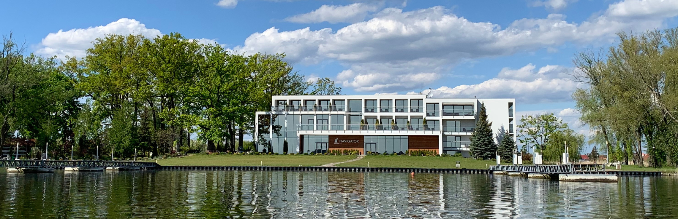 The modern and guest-friendly Navigator Hotel was built among a group of old oaks, directly by the shore of Błędno Lake. The hotel is surrounded by a park with lawns as well as clusters of willows and alders; moreover, the park features sculptures and a place for a bonfire. The area outside the hotel is big enough to organise large open air events. The very easy and quick access via motorway A2 makes the place just as easy to reach from Berlin (2 hours), Poznań (1 hour) and Warsaw (3,5 hour). We are fully prepared to cater for the needs of the disabled.